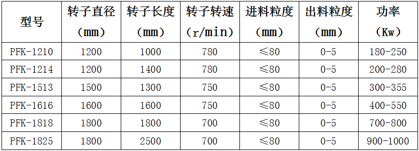 成品砂含粉量低,轉子兩側有對稱可調反擊架,能保證出料粒度;轉子直徑大,細料比例高,5mm占70%。