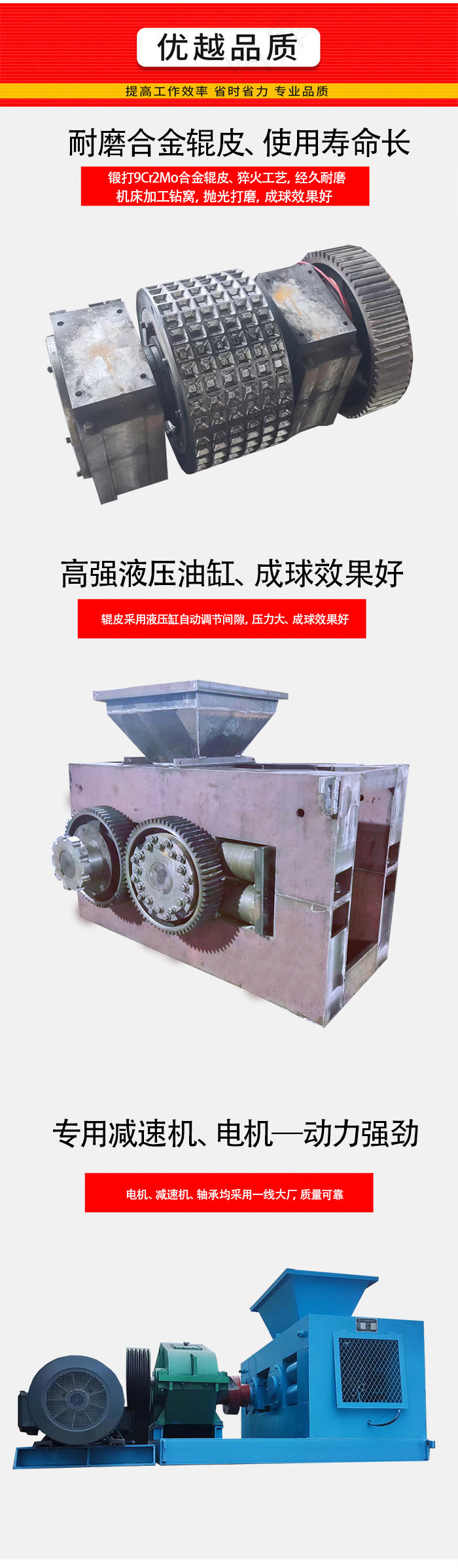 鐵粉壓球機主要用于對鐵粉粉、氧化鐵皮等原料擠壓、壓球,廣泛用于鋼廠提高鋼鐵品味和循環利用。